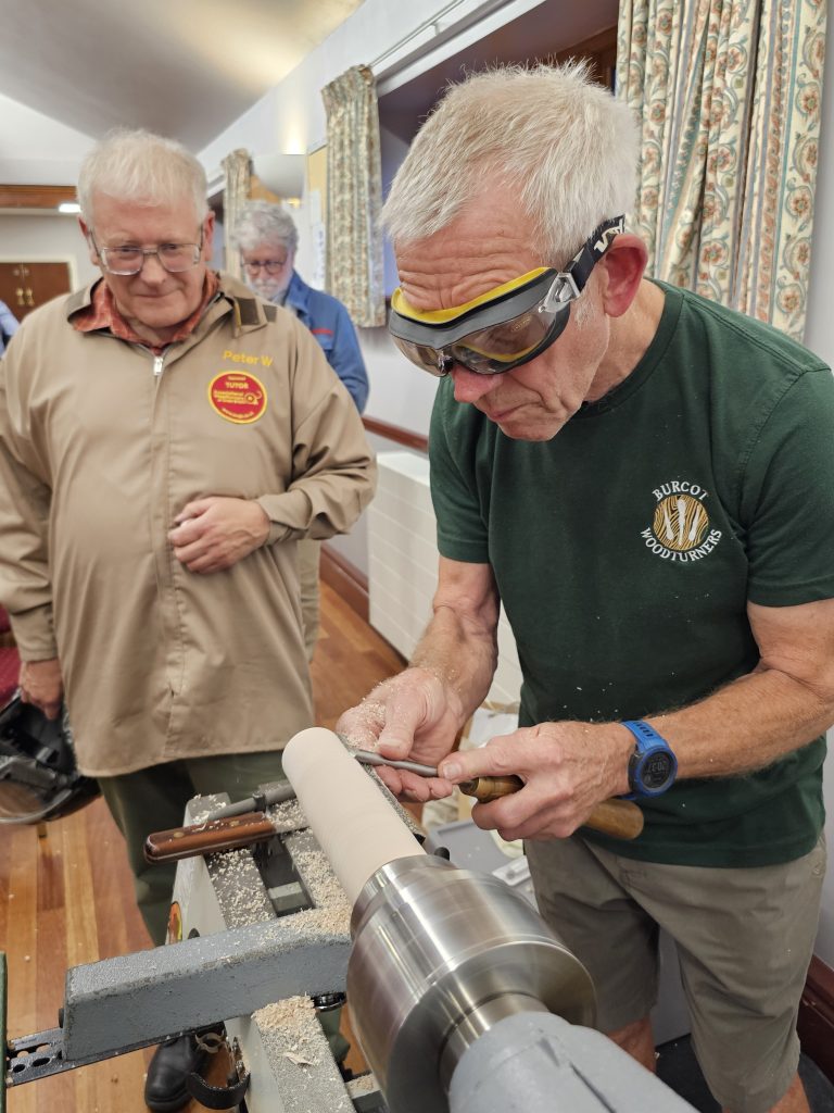 Once the formal part of the evening was over, the usual fun started with 2 club lathes running for members to have a go on. There were plenty of members on hand to share their experience and know how.
