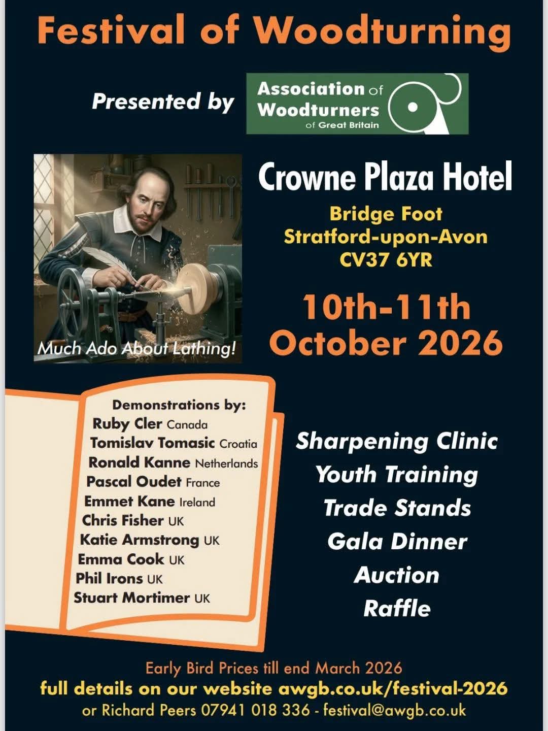 Burcot Village Hall 340 Alcester Rd, Burcot, Bromsgrove, United KingdomIt is our last Hands On night of the year, and a chance for everyone to get involved. Don't worry about bonfire night, turn that piece of wood into something spectacular rather than putting it onto the fire! Don’t forget that our members work table will be set up for members to share their work...