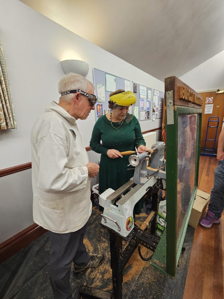 As usual, we had our 3 club lathes up and running for members to get involved.